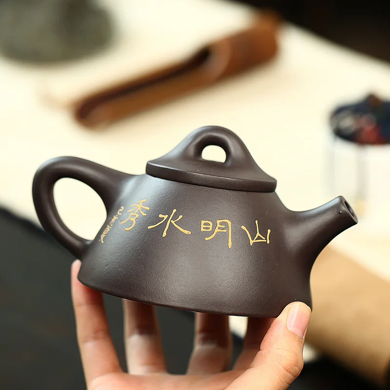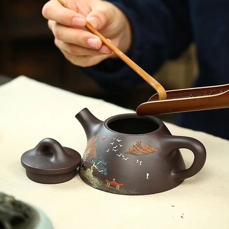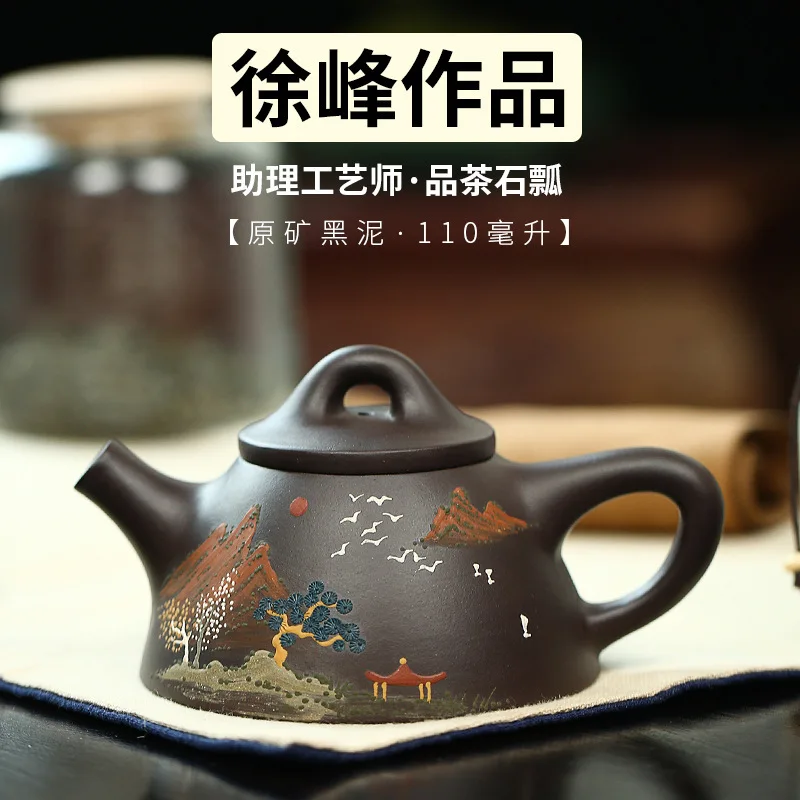 Landscape Overlord Stone Drum Coloured Drawing Or Pattern Dark-red Enameled Pottery Teapot Kungfu O
